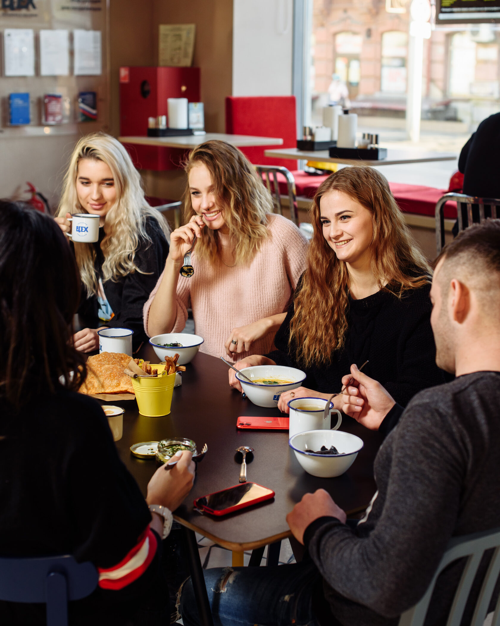 Пельмени и чебуреки под удивительными соусами и добавками по демократичной цене в атмосфере модного, стильного ресторана.