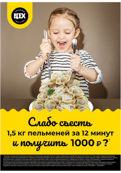 Обеспечить медиадавление не ниже 50%, на открытие пельменотеки ЦЕХ в социальных сетях
